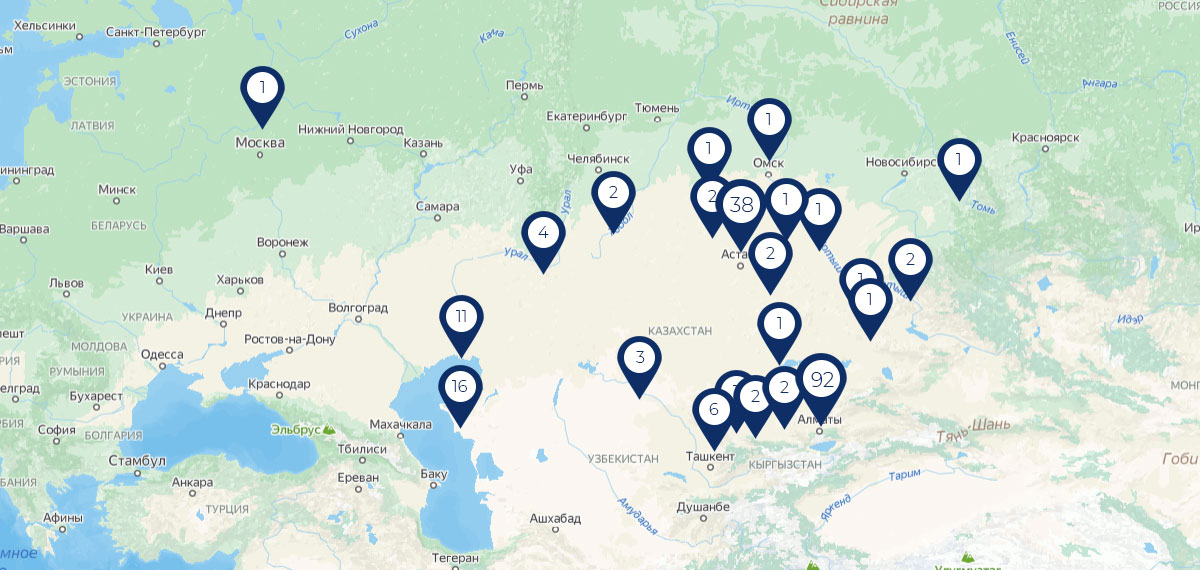С этого момента география поставок расширялась с каждым годом. На сегодняшний день, практически не осталось ни одной области в республике, где бы не работало наше оборудование.