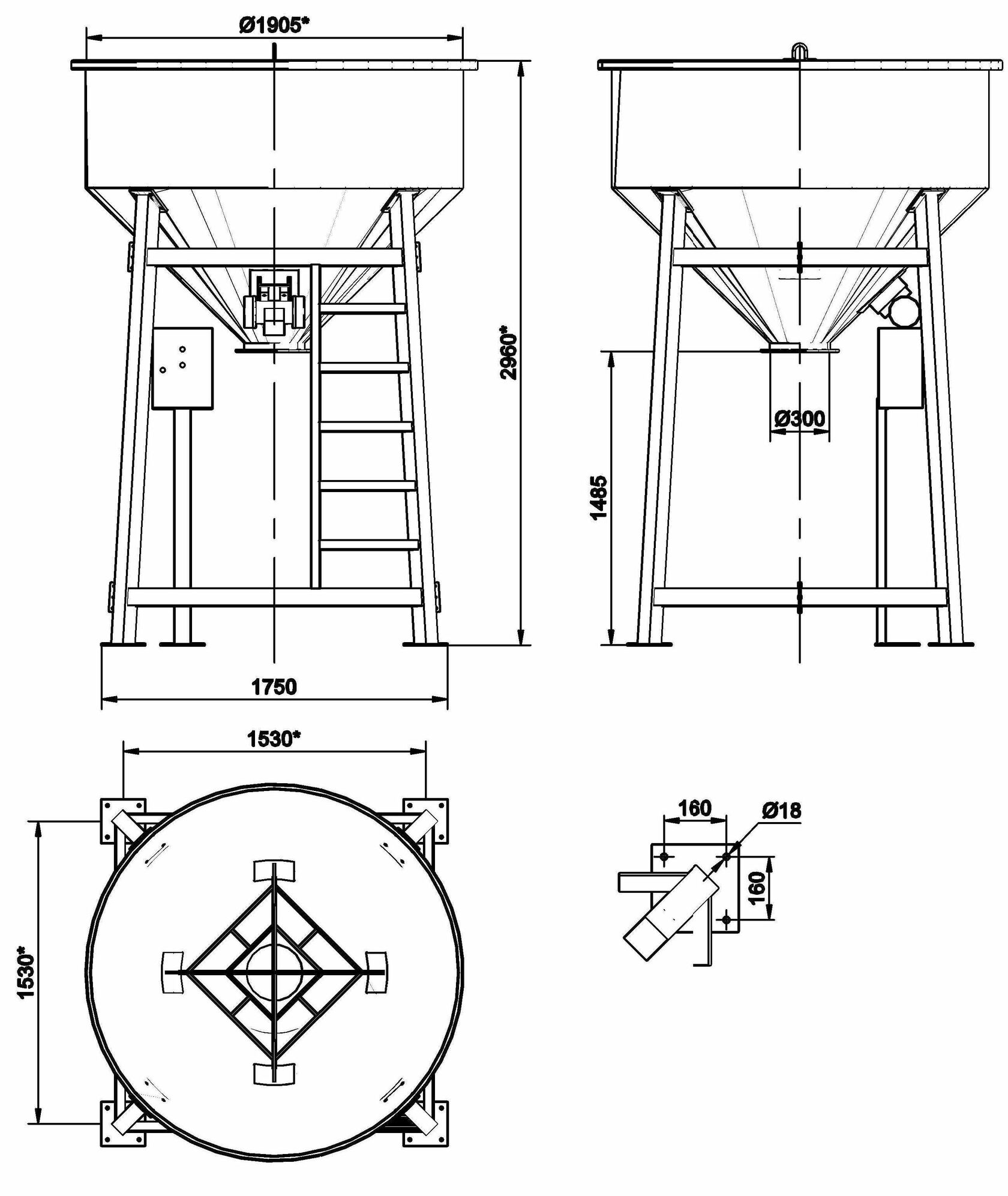 Растариватель биг-бегов предназначен для растаривания мешков биг-бегов цемента и последующей его подаче через шнек в силос цемента.
